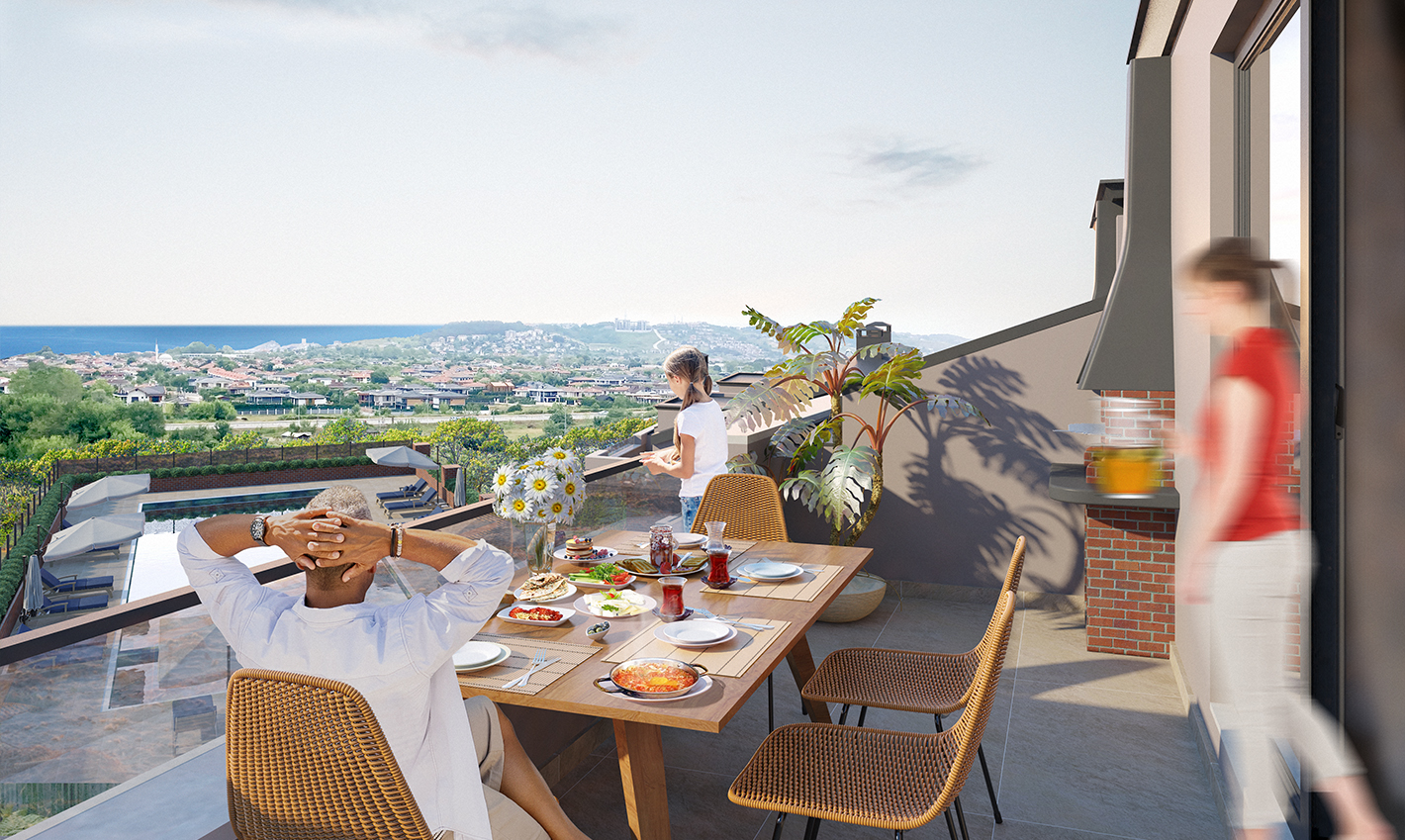 Teraphill 15, deprem yönetmeliğine uygun mühendisliği, estetik ve yatay mimarisi, doğal peyzajı, geniş sosyal alanları, incelikle düşünülmüş ayrıntıları ve butik site konseptiyle huzurla yaşayacağınız yeni bir yuva.